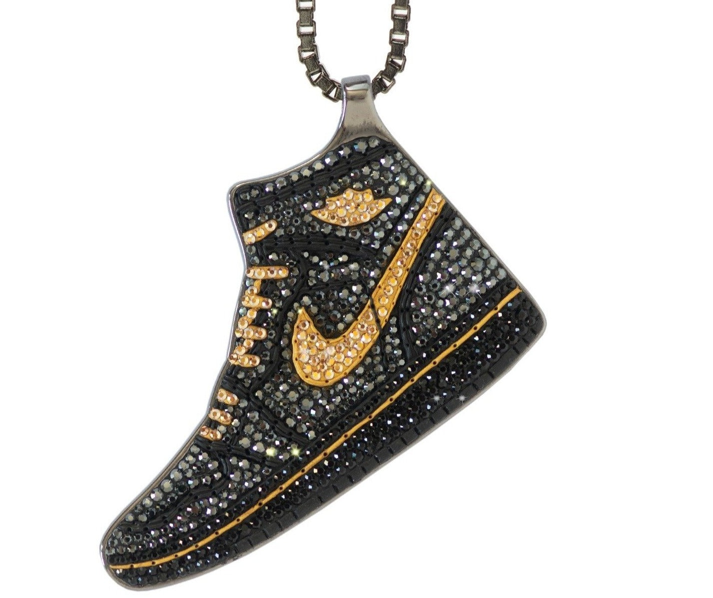 Producto hecho a mano de acero inoxidable, bañado en oro de 14k con diamantes swarovski incrustados.